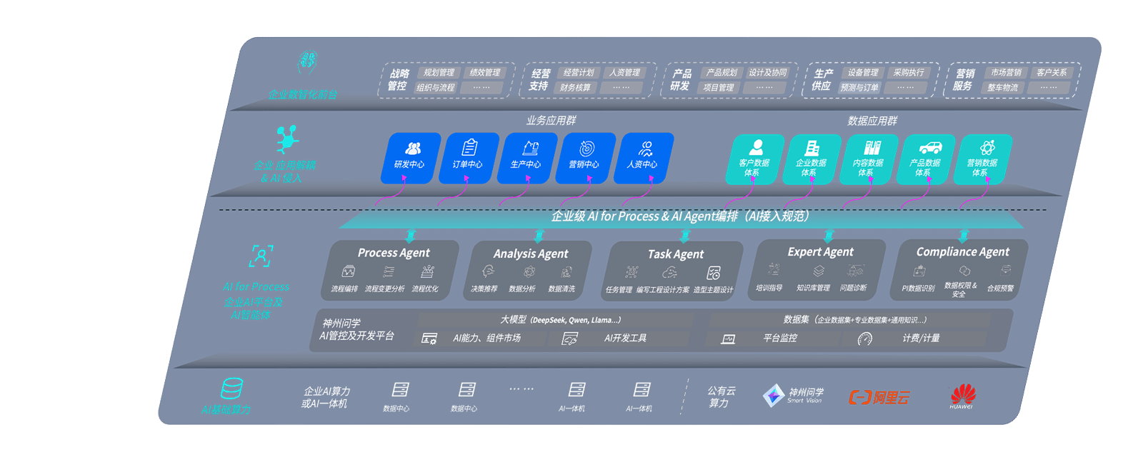 地球人问学智车解决方案是一套基于AI技术的汽车行业智能化系统,,,,覆盖从底层算力到顶层AI应用的全栈方案。。方案由算力层、、模型层和应用层组成:算力层,,,方案支持多种一体机配置,,,,具备云端灵活部署、、多云适配以及动态优化计算资源的能力;模型层,,,,地球人问学平台版提供了企业级AI应用一站式构建与管理平台,,,支持基于后训练强化技术的汽车企业专属模型的训练、、、评测和运营;应用层,,,,地球人问学DeepSeek版提供包括超级员工、、、智能招采、、、、智能营销、、、、智能客服、、、、AI for BI等一系列解决方案,,,可助力汽车行业实现数字化转型,,让管理更智能、、、响应更敏捷。。。。