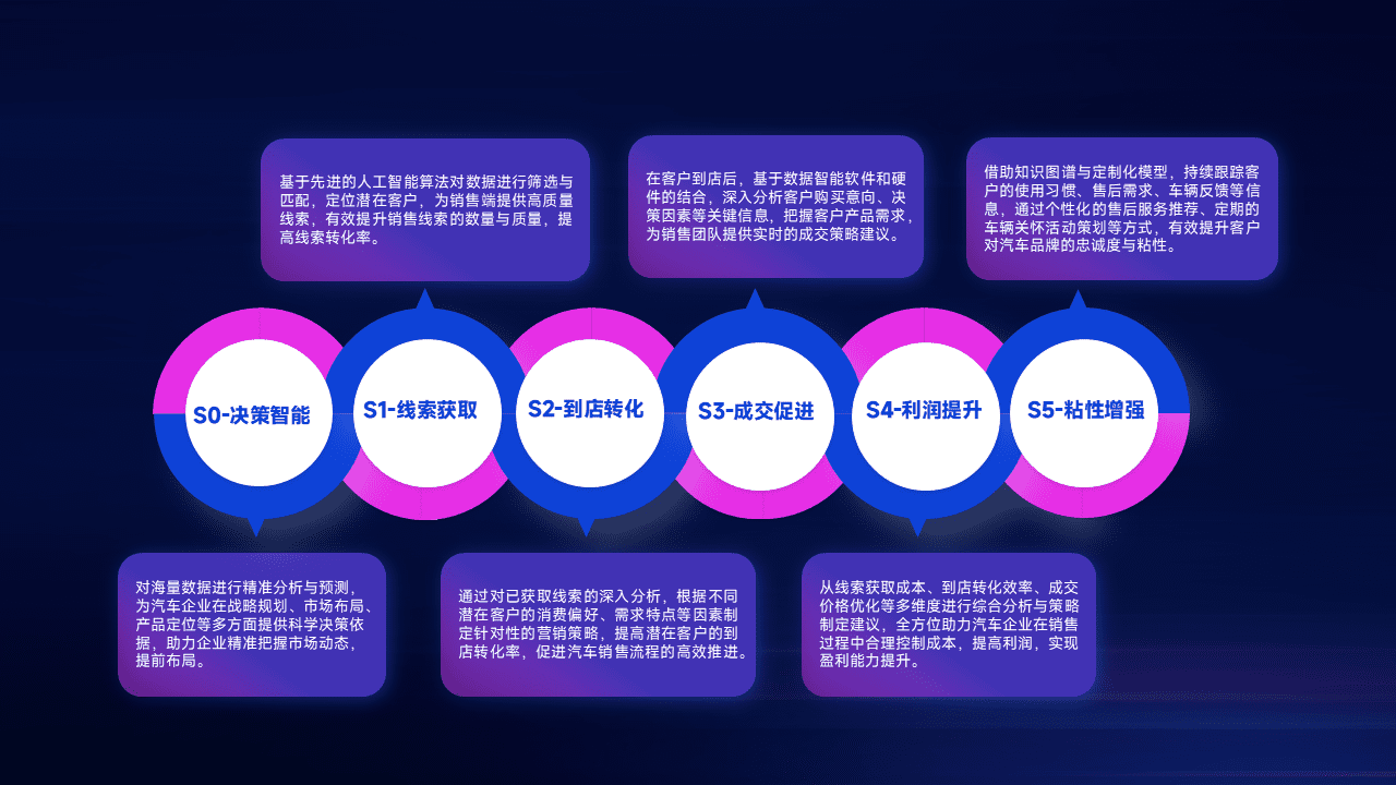 通过拓宽潜在客户来源、、、、优化线索分配并提高到店转化率,,,,以增强销售效率。。。。同时,,,利用线索数据不断优化分析模型,,有效提升转化率,,扩大营销影响力。。。。